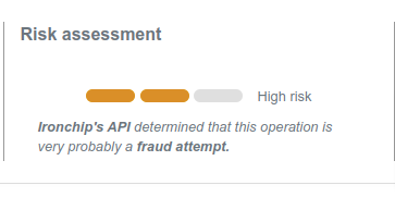 - fraud: Ironchip considera que la acción realizada por el dispositivo es fraudulenta, involucrada en un fraude