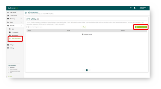 Within the “Directory” section, click “MFA Integrations” and then the “New Integration” button.