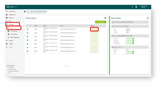 If you want to access more information about the anomaly, you can do so using the “View report” button associated with the report. This will redirect you to a control panel where the available information will be displayed.
