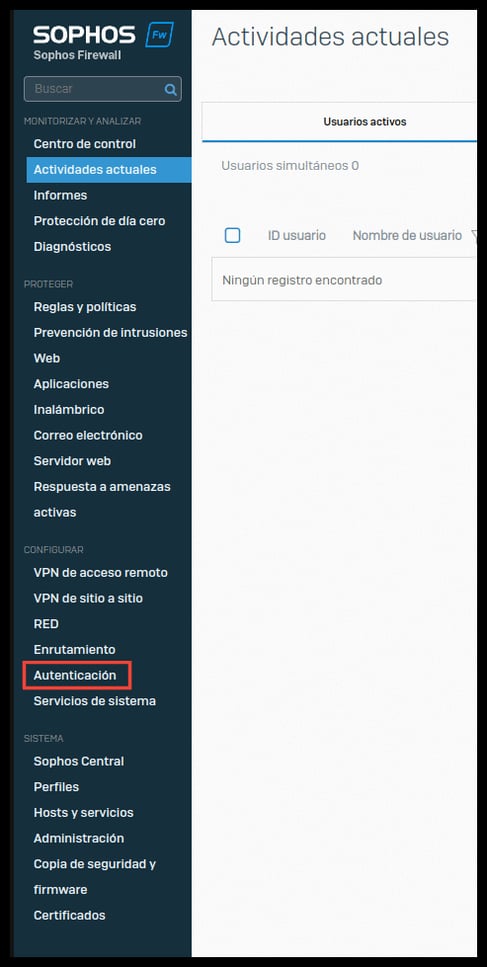 Go to the Sophos administration panel, and enter the “authentication” section.