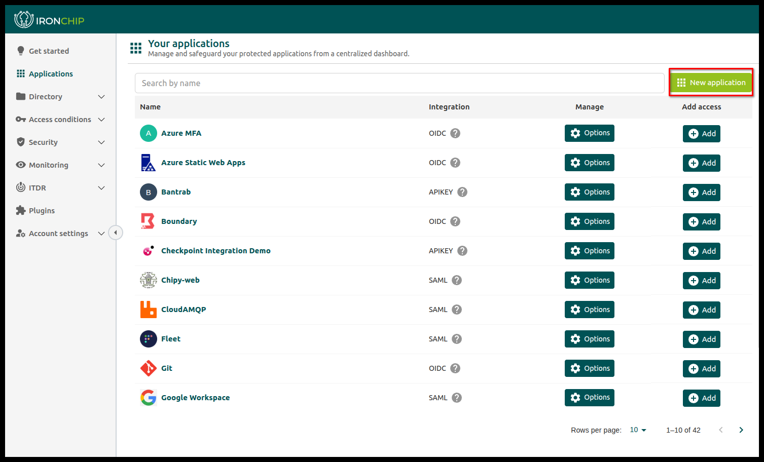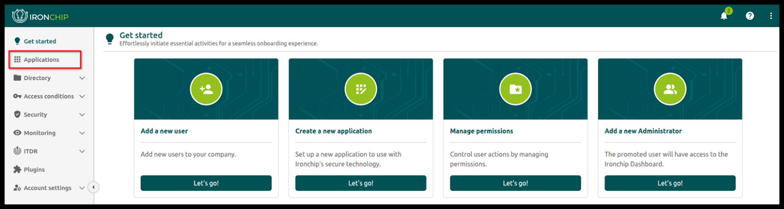 Para empezar con la integración accederemos al panel de Ironchip e iremos al apartado de Aplicaciones.