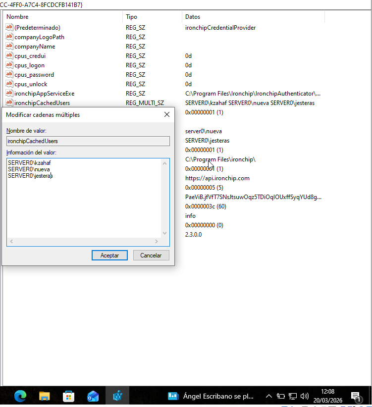La tercera opción que podemos editar en este apartado será “IronchipExcludeUsers”. La cual permite definir una lista de usuarios exentos de autorización. Aquellos incluidos en este apartado no requerirán validación adicional al iniciar sesión en el equipo.