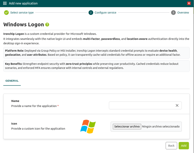 Agregar aplicación en Ironchip