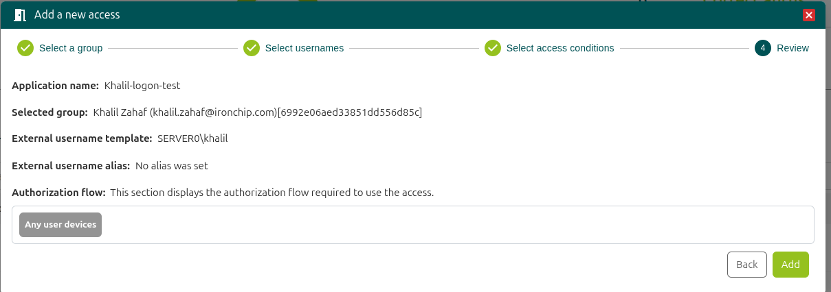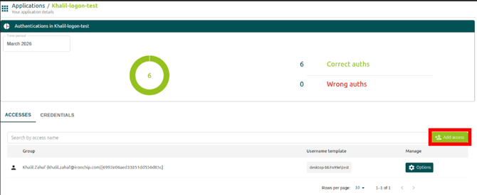- Vaya al servicio recién creado, “Add access”.