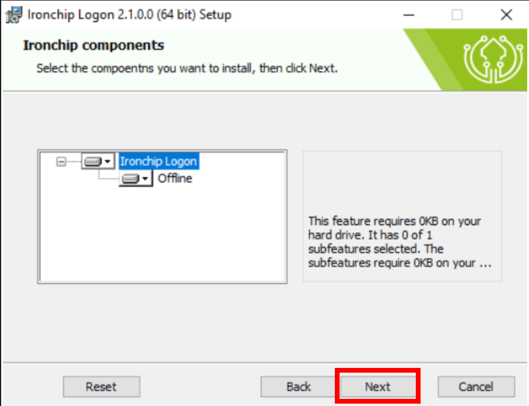 - En la primera opción instalaremos el servicio de Ironchip Windows Logon.