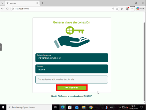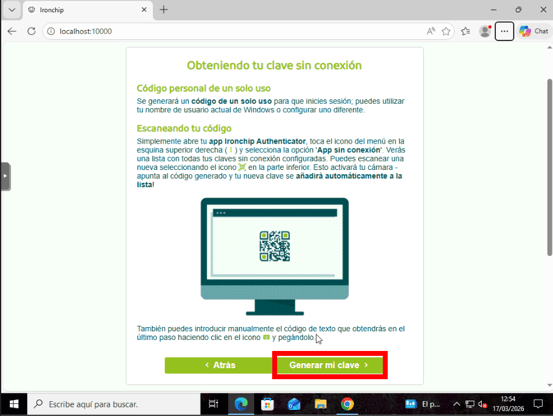 Una vez en el apartado de “Generar clave sin conexión” le daremos al botón de Generar