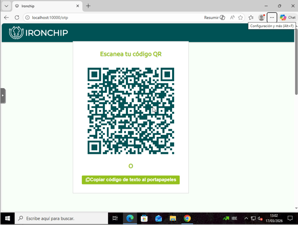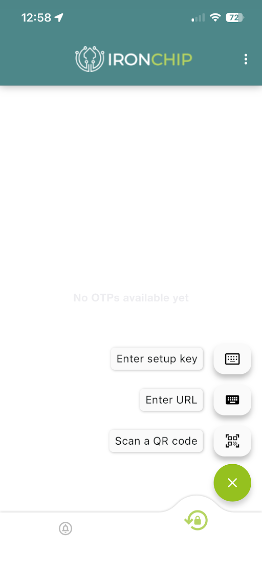 Una vez copiado el código nos dirigiremos al autenticador de ironchip. En el apartado de OTPs le daremos al botón de “+” pero esta vez le daremos a “Enter URL” y pegaremos el código previamente copiado.