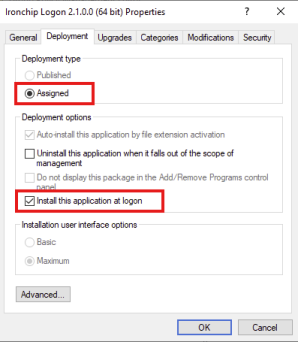 Se abrirá una nueva ventana de las propiedades de la política donde seleccionamos la opción Asignados (debemos seleccionarla así aparezca ya marcada), de está forma se habilitará la opción de Instalar está aplicación al inicio de sesión la cual debemos marcar también.