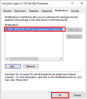 En esta pantalla debemos elegir el archivo .mst generado antes, recuerda elegirlo desde la carpeta compartida, la misma usada al momento de elegir el archivo .msi anterior.