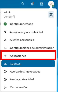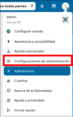 Regrese al panel de Nextcloud, vaya a su perfil y seleccione Configuración de administración.
