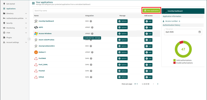 Inicie sesión en el panel de Ironchip y navegue a Applications > New Application