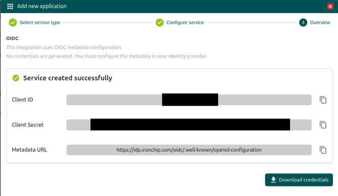 - Secreto del cliente: Pegue el secreto proporcionado por Ironchip.