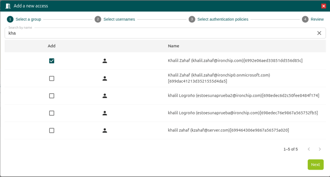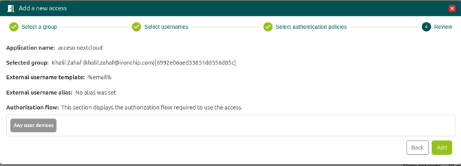Por último le daremos a “Next” y “Add”.Ya tendriamos generado el acceso para el usuario.
