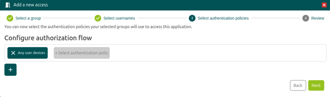 En el último apartado pondremos la forma en la que va a autenticarse el usuario, en este caso lo pondremos en cualquier dispositivo.