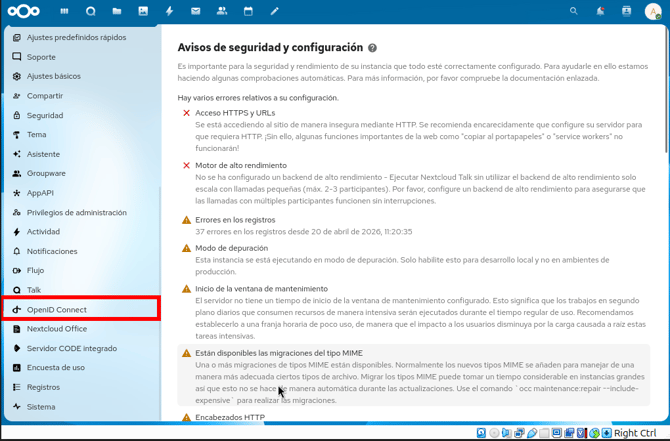 En el menú izquierdo, busque y acceda a la sección OpenID Connect.