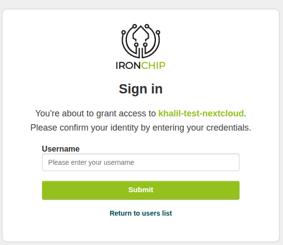 En la pantalla de inicio de sesión, aparecerá un nuevo botón: "Login with [Ironchip Login]".