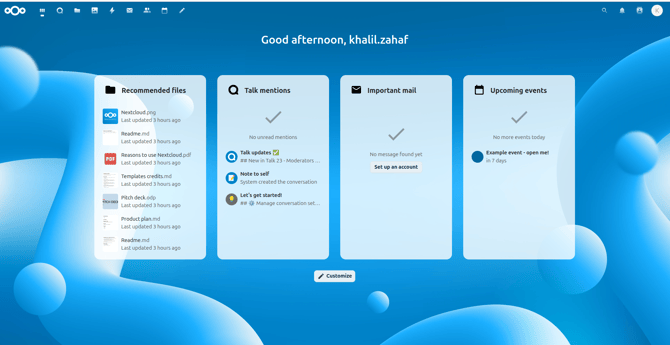 Tras completar el proceso en su dispositivo, será redirigido automáticamente al panel principal de Nextcloud.