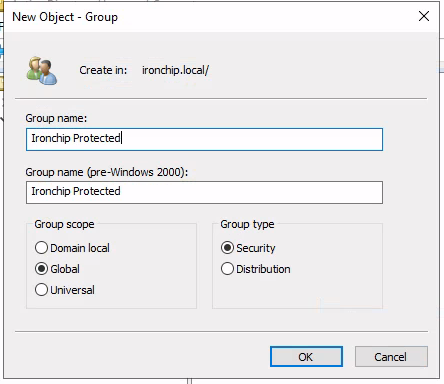 Para generar un grupo protegido, simplemente cree un nuevo grupo haciendo clic derecho en el controlador de dominio y luego seleccionando Nuevo →Grupo: