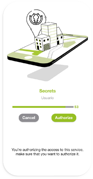 Una vez dentro, al pulsar en “Authorize” se abrirá la pantalla de escaneo de señales que verificará si se está en el lugar autorizado para el acceso al servicio o no. Si está en el lugar correcto, habrá accedido a su servicio.